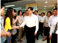 2011年8月11日,時(shí)任中共中央總書記胡錦濤視察華強(qiáng)集團(tuán)時(shí)與員工親切握手。